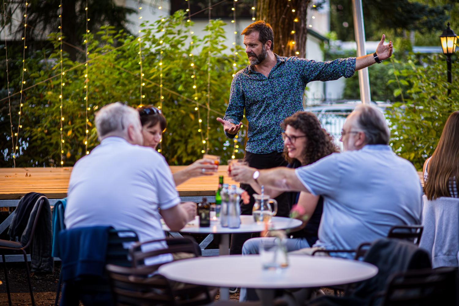 Profesionální barman s vypravěčem vás provedou večerem, kde se fantazie mísí s chutí a atmosféra ožívá s každým douškem.